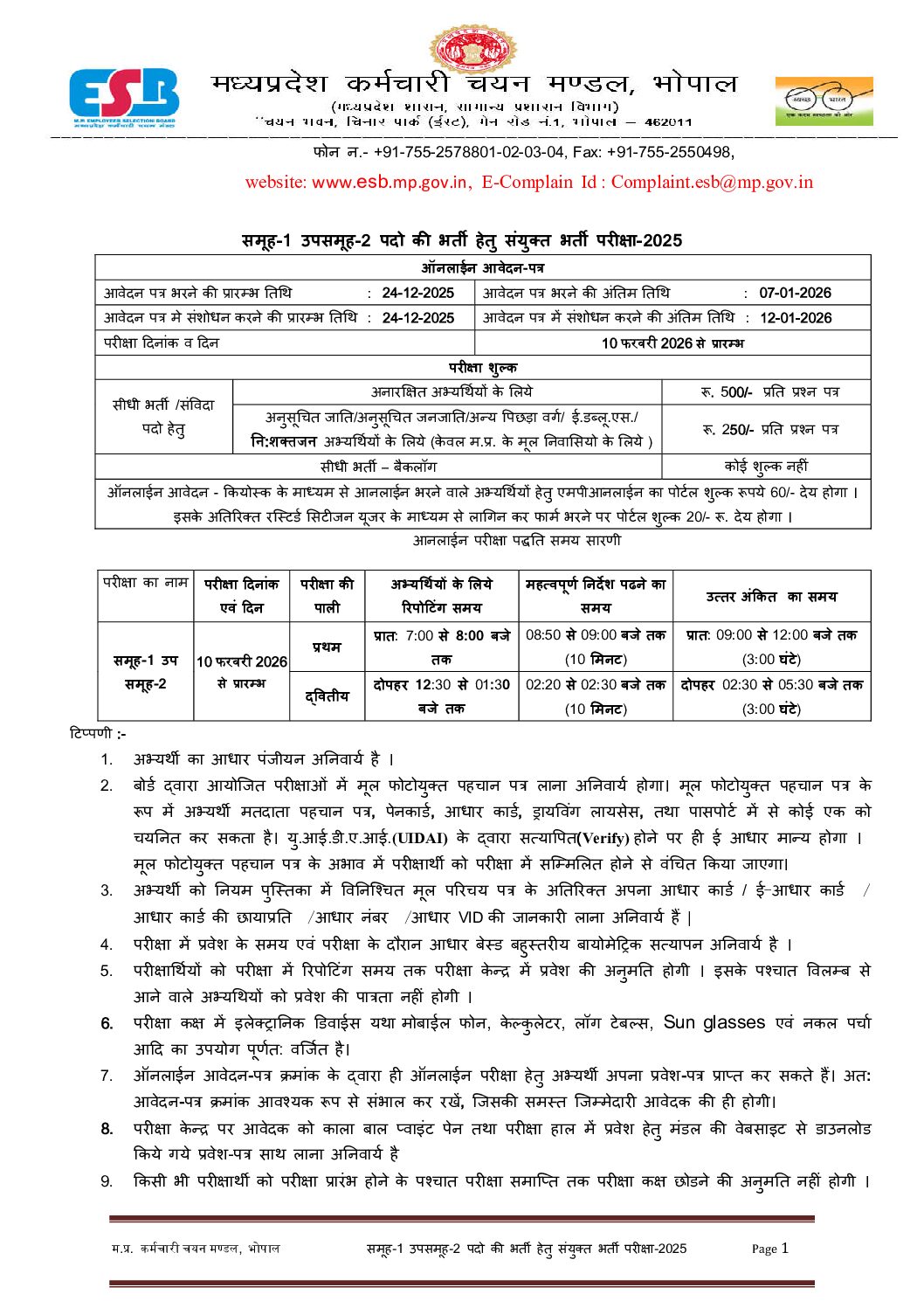 MPESB Group 1 Sub Group 2 Recruitment 2025 Last Dates